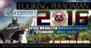 TOURING PERADABAN 2016 hari : sabtu – minggu tanggal : 13 – 14 februari 2016 tujuan : SITUS MEGALITIK GUNUNG PADANG CIANJUR JAWA BARAT rute : bekasi – kali malang – halim – pasar rebo – jl raya bogor tikum : ngacapruk bikers, bulan2 bekasi jam : 05.30 berangkat jam 06.00 jam 08.00 singgah di […]